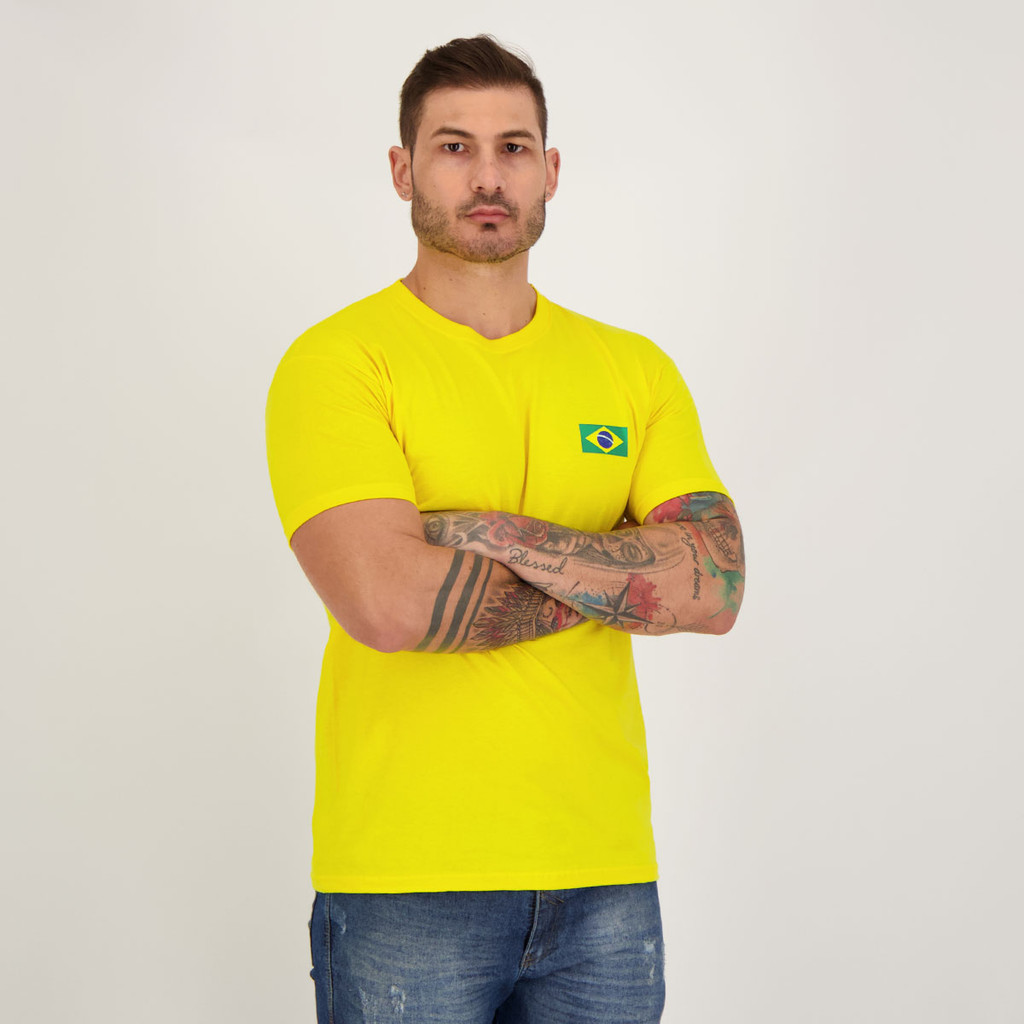 Composição: 100% AlgodãoCor predominante: AmarelaIndicado para: CasualOrigem: NacionalGênero: UnissexManga: CurtaGola: CarecaDimensões aproximadas (A x L):P: 68 x 49 cmM: 70 x 51 cmG: 72 x 53 cmGG: 74 x 55 cm