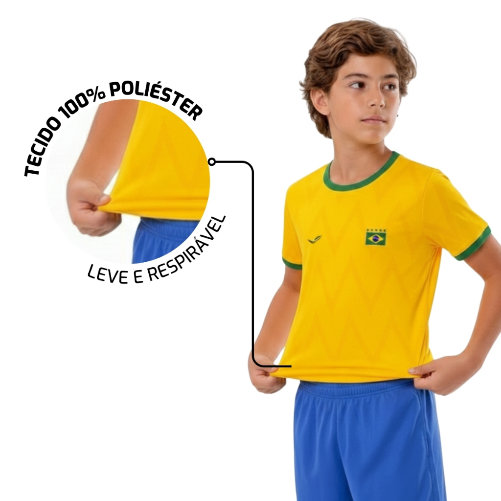 Camisa Brasil Infantil 2026 Torcedor Dry Fit Amarela Conforto Respirável Futebol Dia a Dia
