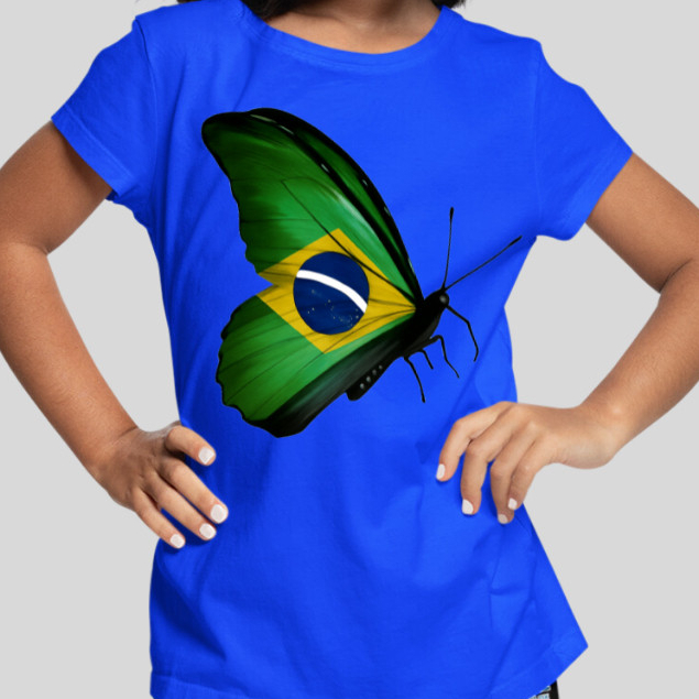 Camisa Brasil Infantil Camiseta Seleção Blusas Infantis Menina Borboleta Cor Bandeira
