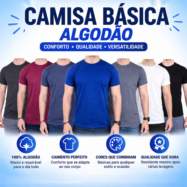 | Camisa Camiseta Basica Algodão Penteado Alta Qualidade Várias Cores este produto | R$ 16,90 | 49% | 4.8/5 | 15 |