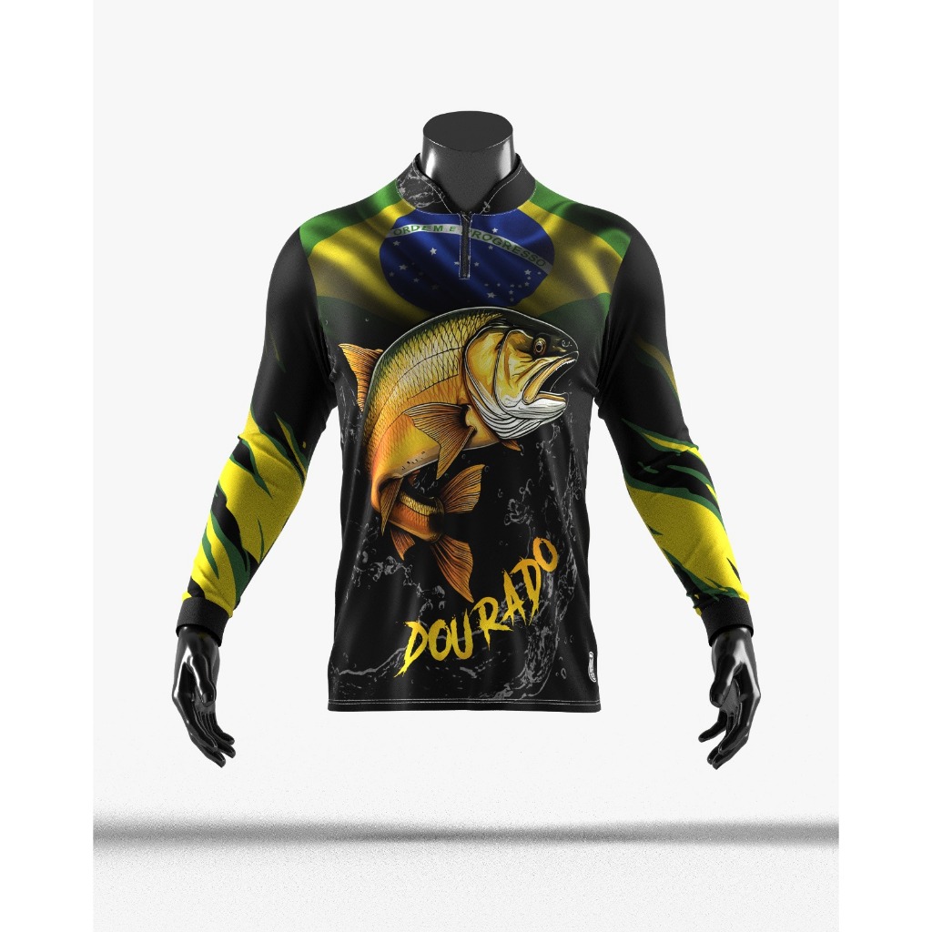 Camisa Camiseta Blusa de Pesca Masculina Modelo Brasil Dourado - com proteção UV