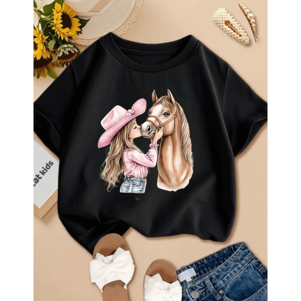 Camisa Camiseta Blusinha Infantil Juvenil Cavalo Cavalgada Menina Chapéu 100% Algodão Agro