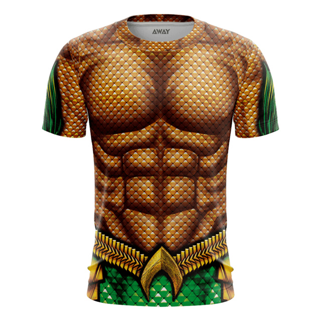 Camisa Camiseta Dryfit Premium Super Heróis Traje 3d Aquaman Filme Proteção Uv Adulto Infantil