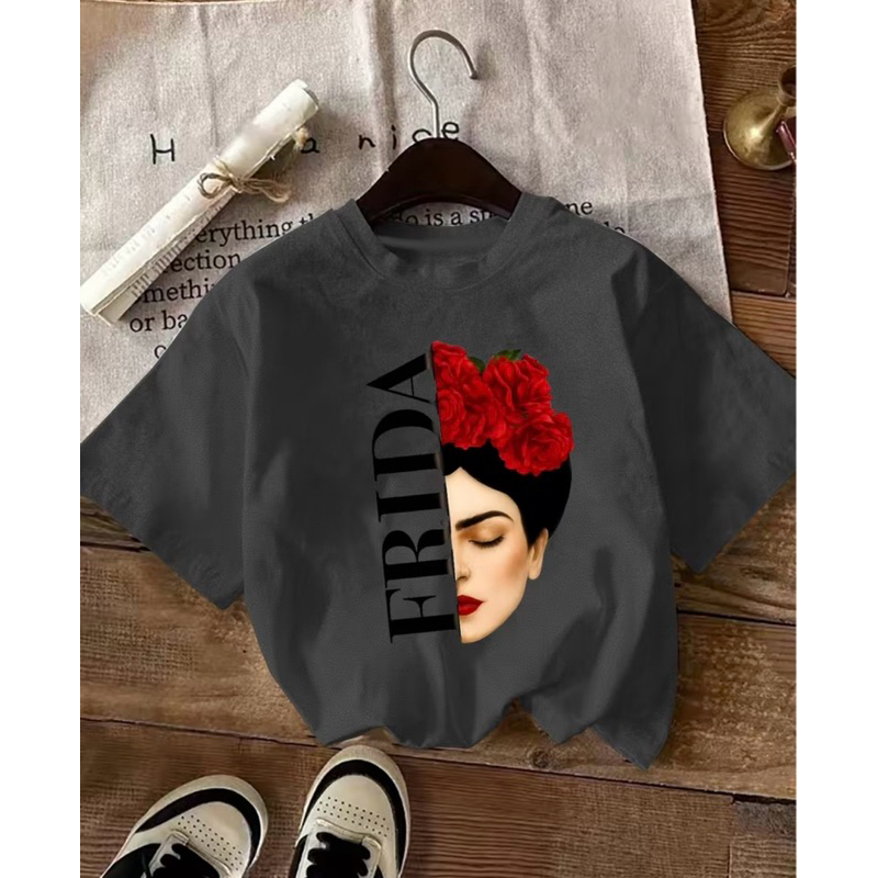 Camisa Camiseta Feminina FRIDA Estilosa Confortável Gola Redonda Em Várias Cores 100% Algodão