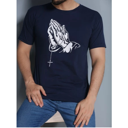 Camisa Camiseta Masculina Minimalista Estampa Mão Rezando Religiosa Cristã Fé Algodão 100% Fio 30.1