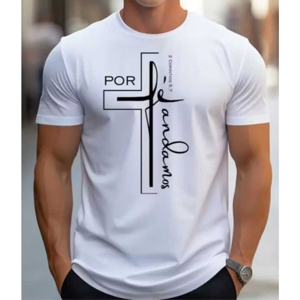 Camisa Camiseta Masculina Por Fé Andamos Algodão Malha 30.1