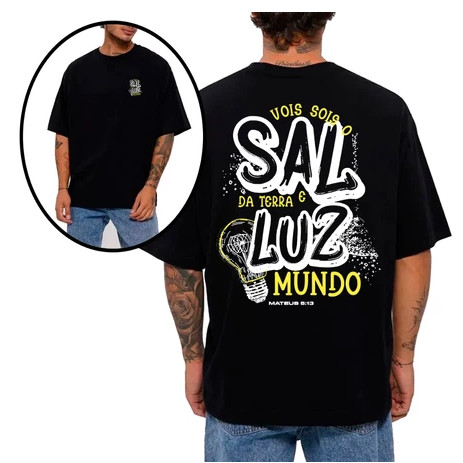 Camisa Camiseta Masculina Sal e Luz da Terra Religiosa Cristã Streetwear Algodão 100% Fio 30.1