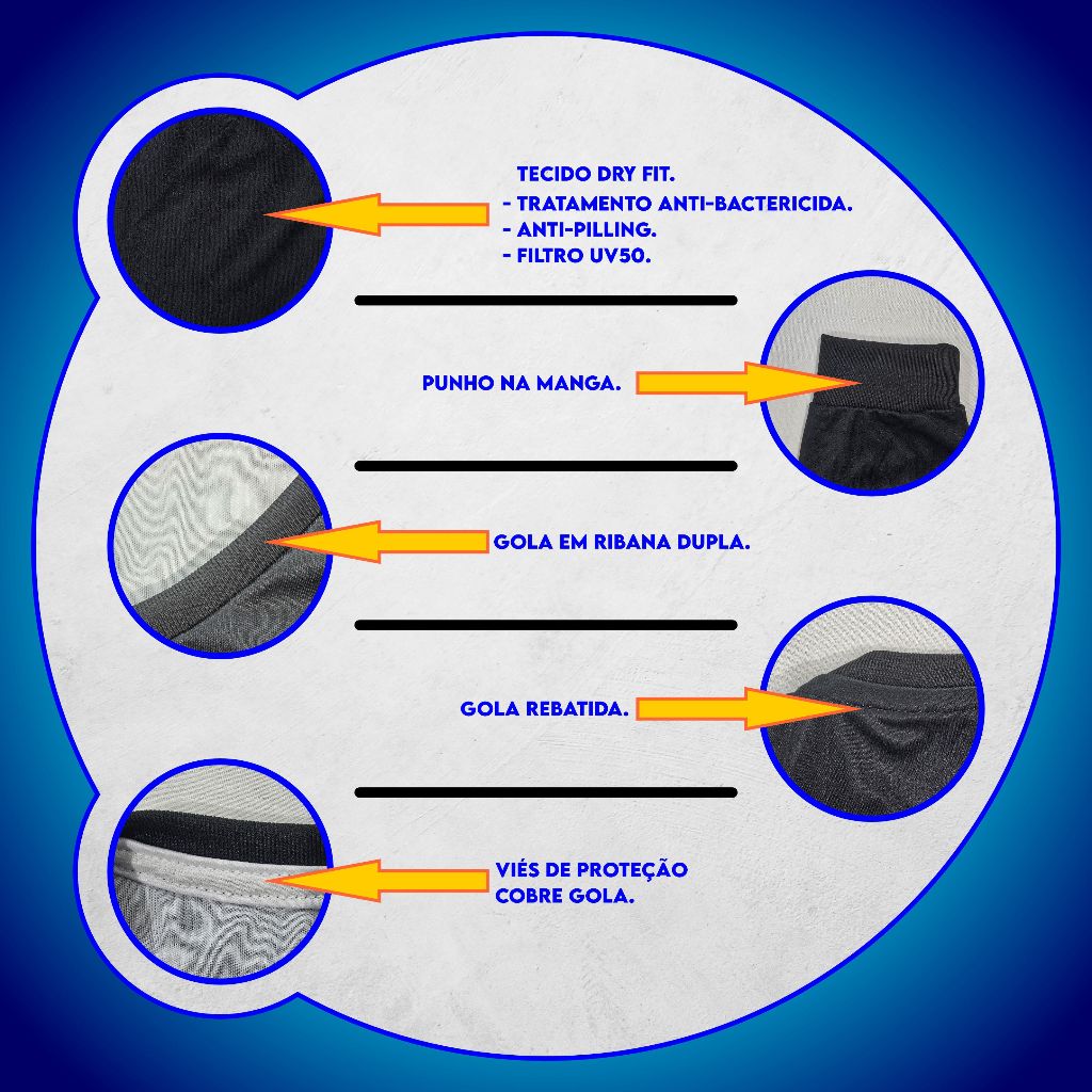 *ATENÇÃO LEIA TODO O ANUNCIO* - Tire todas as suas dúvidas através do campo de perguntas. - Leia todo o anúncio antes de efetuar a compra. ======================================================== Camiseta em Tecido Dry Fit 50% Poliamida 50% Poliéster.............NÃO É ALGODÃO!!! - Tecido resistente e muito leve. - Costuras Reforçadas. - Com Filtro UV50 e Tratamento Anti-Bactericida para não pegar cheiro. - Tecido não pega bolinha. - Não encolhem na lavagem, esse processo já é feito na fabricação. - Estampa Digital, que não desbota e não racha durante a lavagem. ======================================================= (((( SEGUIR TABELA DE TAMANHOS DA ULTIMA FOTO )))) ======================================================= - Todos os envios E cobranças de frete, são feitos através da Plataforma Shopee e não pelo vendedor. - A data de entrega e o valor do frete, é exibido no momento da compra, logo abaixo do valor do anúncio. ======================================================= -Nosso atendimento é feito de Segunda à Sexta Feira, de 9:00h às 18:00h. Mensagens e arquivos enviados fora deste horário serão respondidos no próximo dia útil.