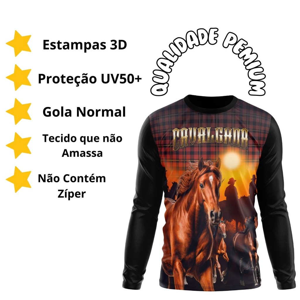 Camisa Camiseta Unissex UV Estampa Cavalgada Muladeiros Cavalos novo