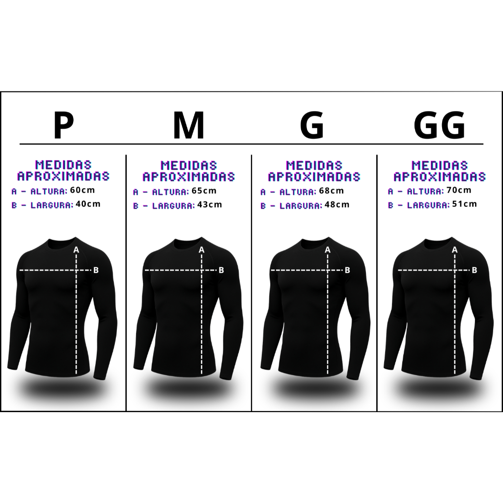 Camisa Térmica Segunda Pele UV 50+ PROTECTION, criada para proteger a pele da ação nociva dos raios UV-A e UV-B, com o fator de proteção solar FPU 50+ presente em seu DNA. Bloqueia de 99% dos raios UV-A e UV-B, além de um fator de proteção 50 (FPU 50+) que não sai após as lavagens. Composição: 90% Poliéster 10% Elastano Proteção UV: Adequado para exposição ao Sol, o efeito de proteção UV é permanente. Uso: Piscina; Praia; Trilha; Pescaria; Caminhada; Corrida; Atividades ao Ar Livre; Voo a Vela; Veleiro; Ciclismo; Corrida etc... Tipo: Manga longa Gol: Redonda Origem: Nacional - Fabricação Própria Garantia: Defeito de fabricação. Cuidados: Dispensa o uso de amaciante, Dispensa o uso de ferro de passar MEDIDAS APROXIMADAS: TAMANHO ADULTO PADRÃO "P" = 60cm x 42cm x 62cm (Comprimento - Tórax - Manga) "M" = 64cm x 46cm x 64cm (Comprimento - Tórax - Manga) "G" = 68cm x 50cm x 66cm (Comprimento - Tórax - Manga) "GG" = 72cm x 54cm x 68cm (Comprimento - Tórax - Manga) "EGG"= 74cm x 60cm x 70cm (Comprimento - Tórax - Manga)