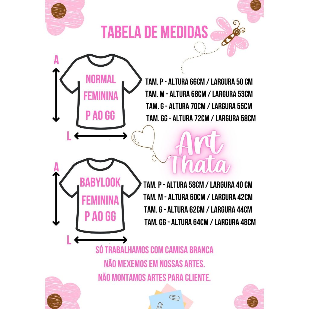 Estampas feitas por sublimação e não desbotam Modelo: Camisa Careca(normal) e Babylook Cor: Branca Tecido: 100% Poliéster Tamanhos: P ao GG adulto **AS CAMISAS QUE VÃO SÃO AS DO ANÚNCIO QUE COMPRAR **SÓ TRABALHAMOS COM CAMISAS NA COR BRANCA **TEMOS CAMISA NORMAL E BABYLOOK. É SÓ ESCOLHER A PEÇA CERTA NA HORA DA COMPRA **NÃO MONTAMOS ARTES PARA CLIENTES **NÃO MEXEMOS EM NOSSAS ARTES **NÃO ACRESCENTAMOS NADA NAS ARTES