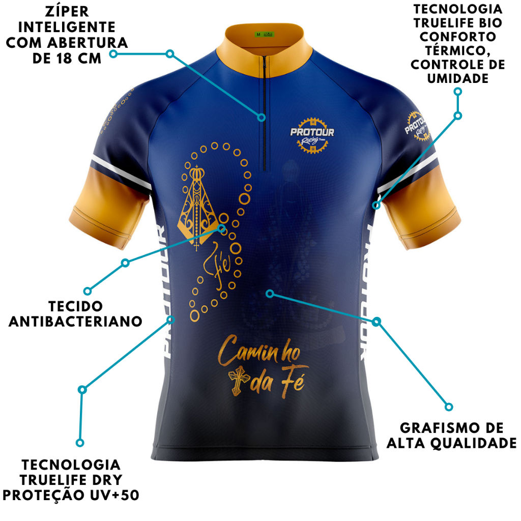 Camisa Ciclismo Ciclista Masculina Mountain bike Caminho da Fe Com Bolsos Protecao Solar UV 50
