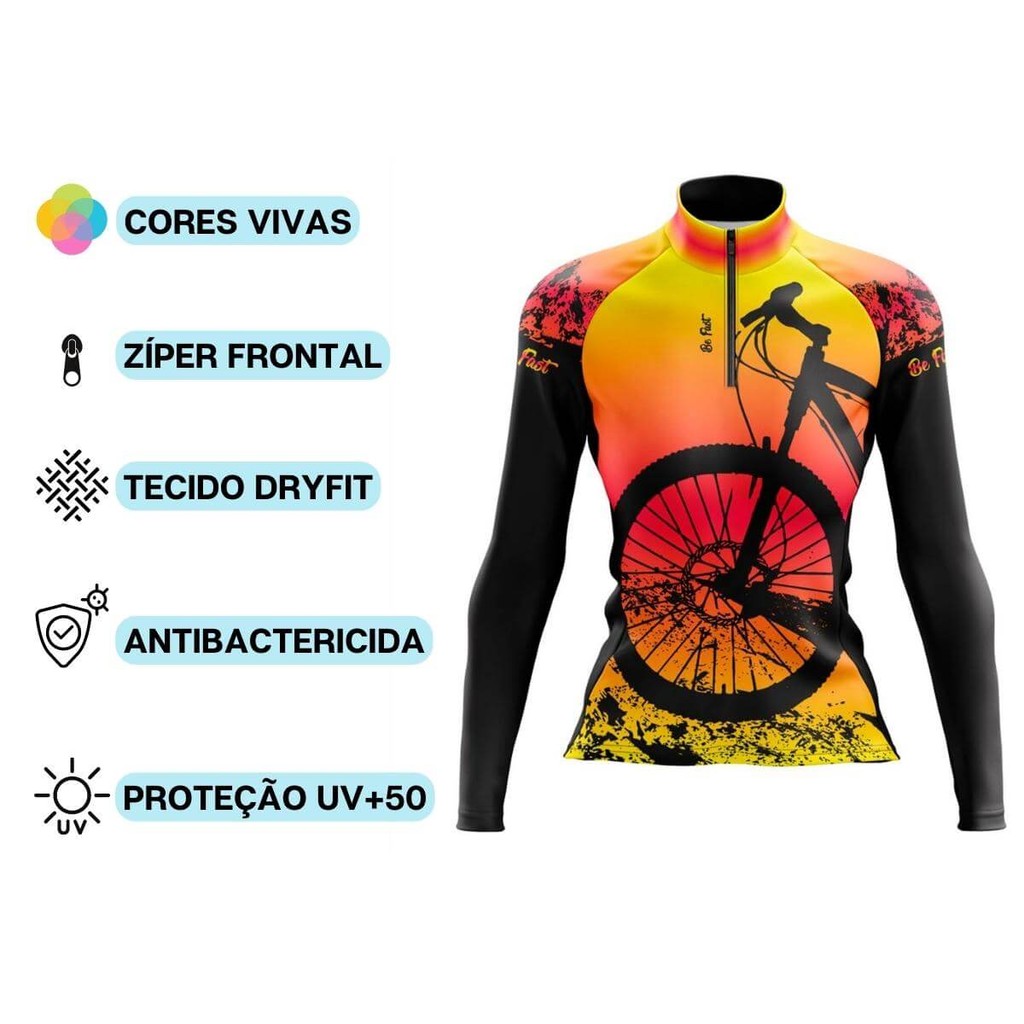 camisa ciclismo feminina manga longa bike pneu colorida 13