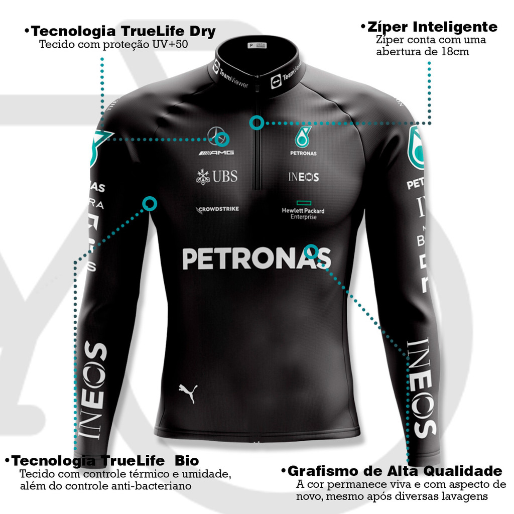 CAMISA CICLISMO MASCULINO PETRONAS INEOS COM BOLSOS UV 50+