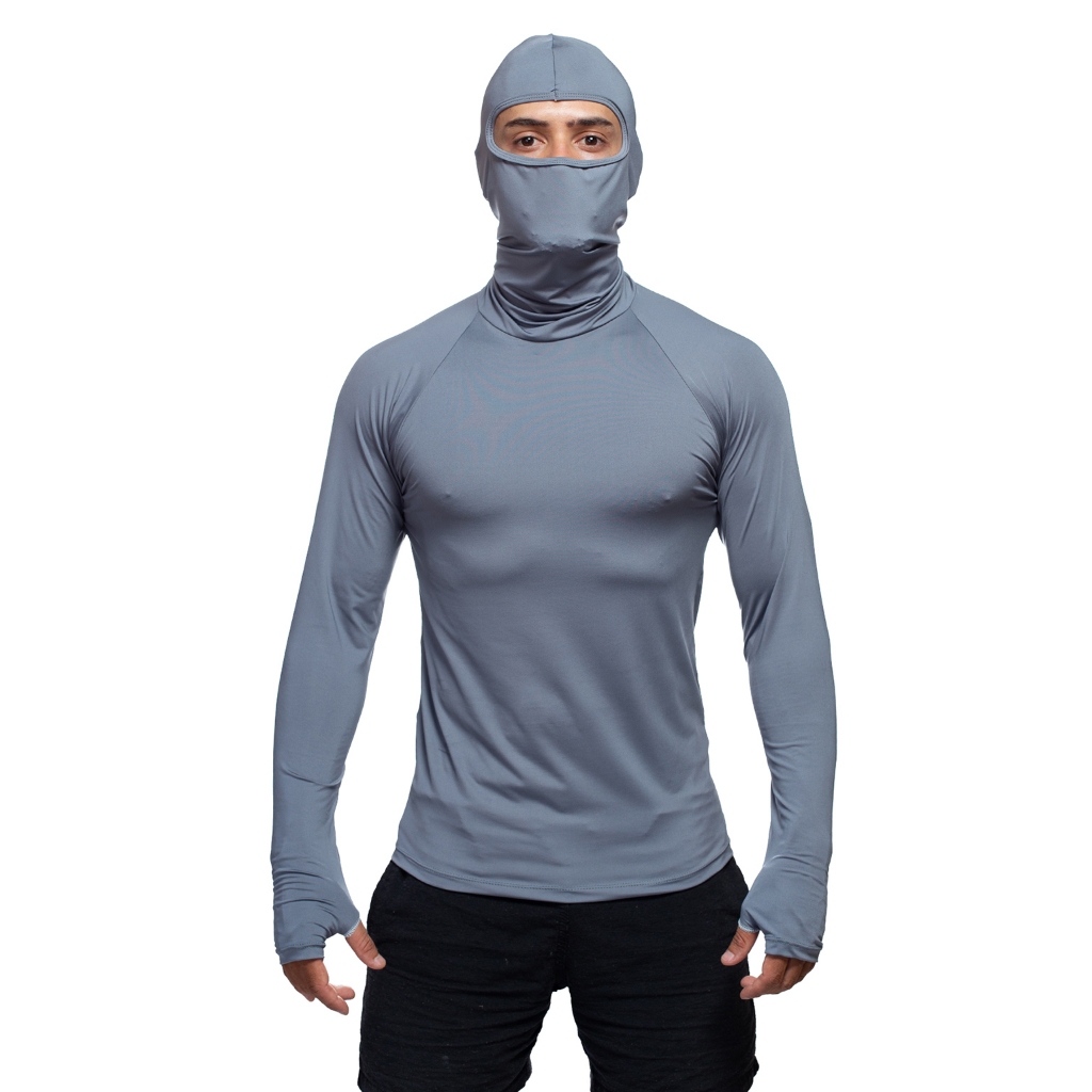 Camisa Com Proteçao Termica Uv50+ Segunda Pele Masculina Touca Capuz Motoqueiro
