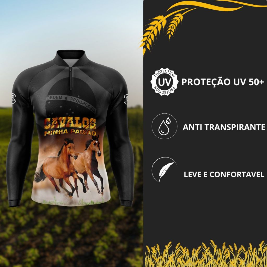 Camisa com Proteção UV 50+ Masculina - Não desbota - | Estampa de Cavalo - Secagem Rápida e Conforto