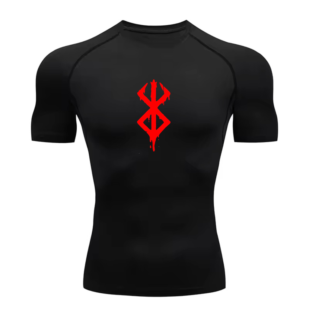 Camisa Compressão Proteção Uv 50+ Estampada Tecido Gelado Segunda Pele Manga Curta Símbolo Berserk