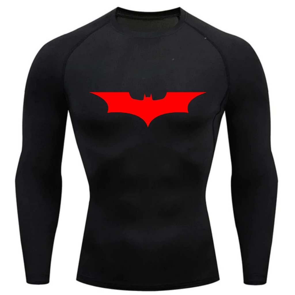 Camisa Compressão Proteção Uv 50+ Estampada Tecido Gelado Segunda Pele Manga Longa Símbolo Batman Rash Guard