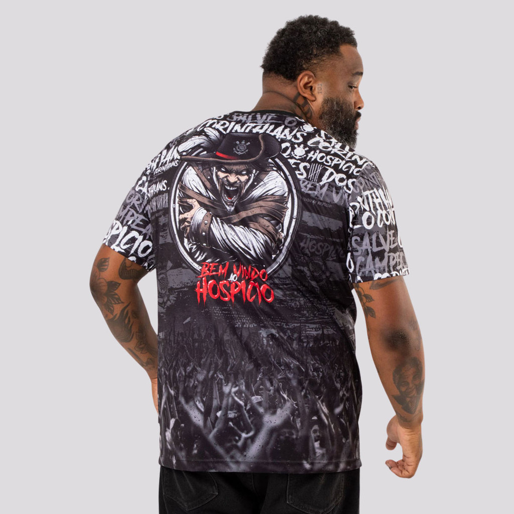 Composição: 100% Poliéster Cor Predominante: Preto Escudo: Aplicado Gênero: Masculino Clube: Corinthians Origem: Nacional Manga: Curta Gola: Careca Dimensões aproximadas (A x L): P: 71 x 54 cm M: 73 x 56 cm G: 75 x 58 cm GG: 77 x 60 cm