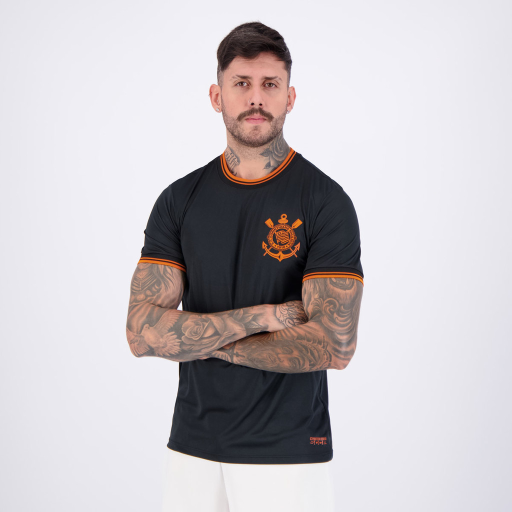 Camisa Corinthians Classic Dry Preta e Laranja