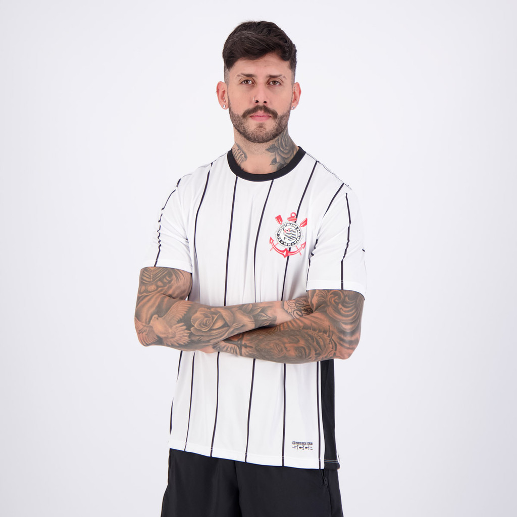 Composição: 100% PoliésterCor Predominante: BrancaEscudo: EstampadoGênero: MasculinoClube: CorinthiansOrigem: NacionalManga: CurtaGola: CarecaDimensões aproximadas (A x L):P: 73 x 51 cmM: 74 x 53 cmG: 75 x 57 cmGG: 77 x 58 cmEG: 78 x 60 cm