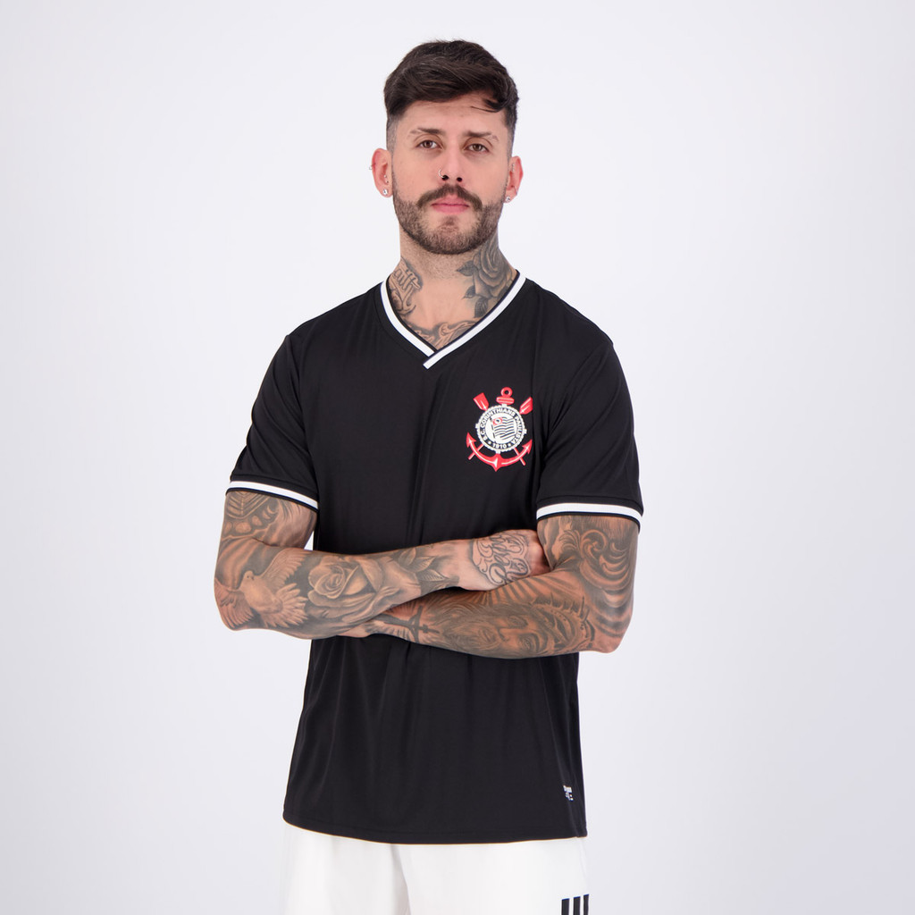 Camisa Corinthians Fitness Escudo Preta e Branca