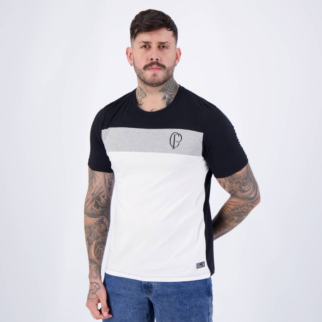 Camisa Corinthians Logo CP Preta e Branca
