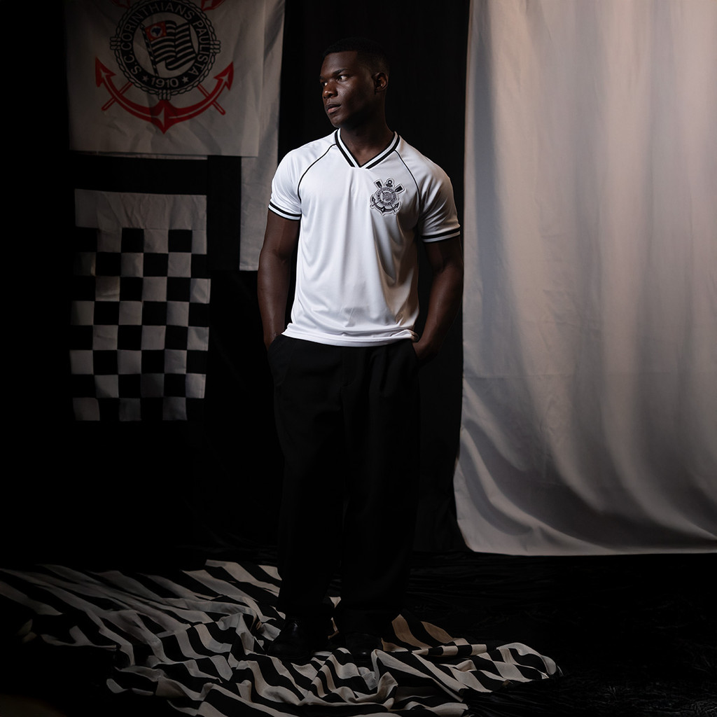 Leve a elegância do Preto e Branco pra qualquer rolê. A Camisa Corinthians Monocromática Branca entrega visual clean, escudo bordado em tom sobre tom e acabamento com filetes pretos — minimalista no look, gigante na atitude. Ideal pra jogo, estádio ou dia a dia. Feita pro Torcedor Raiz - Escudo bordado no peito (monocromático), presença sem exagero. - Gola V com vivo preto e manga raglan: mobilidade e caimento bonito. - Punhos com detalhe preto que destacam o clássico PB. - Costas com “CORINTHIANS” na nuca: assinatura discreta. - Tecido macio e respirável, conforto pra usar o dia inteiro. - Modelagem regular: veste bem sozinho ou por baixo de jaqueta. Detalhes técnicos - Cor: branca com detalhes pretos - Escudo: bordado aplicado (monocromático) - Gola: V com filete - Mangas: raglan - Caimento: regular - Indicado para: casual, estádio, street Como combinar Jeans escuro, alfaiataria preta ou jogger — a base branca eleva qualquer produção e deixa o escudo falar mais alto.