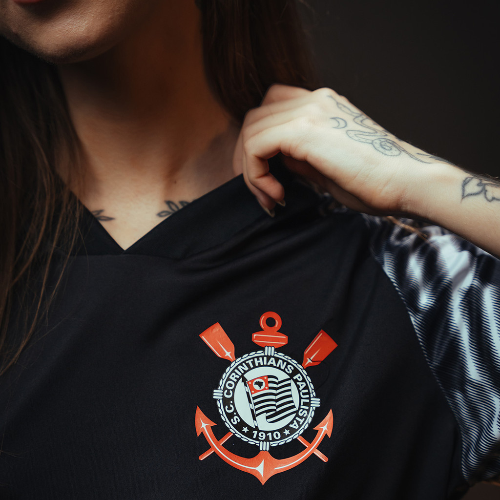 Camisa Corinthians SCCP Lines Preta Feminina Oficial