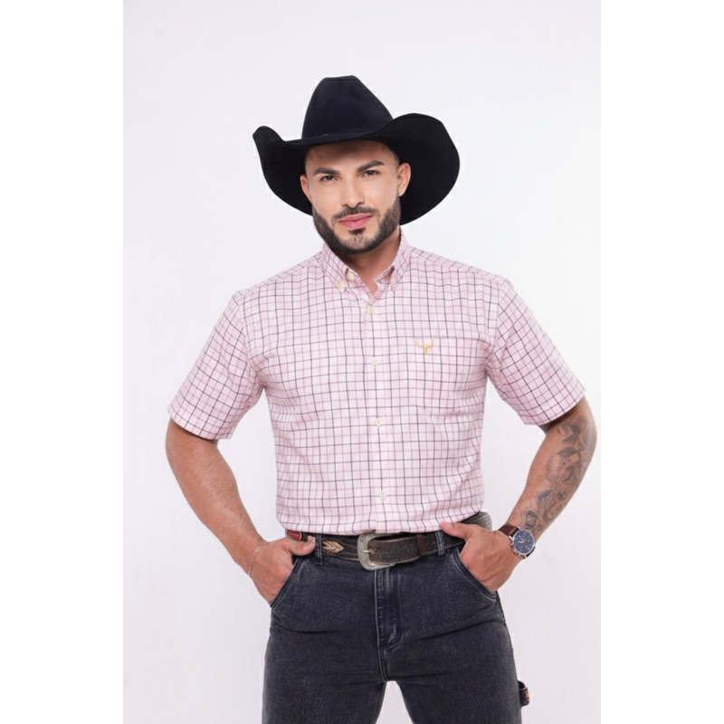 Camisa Country Bolso Micro Xadrez Manga Curta Luxo Premium Social Masculina Algodão Poliéster