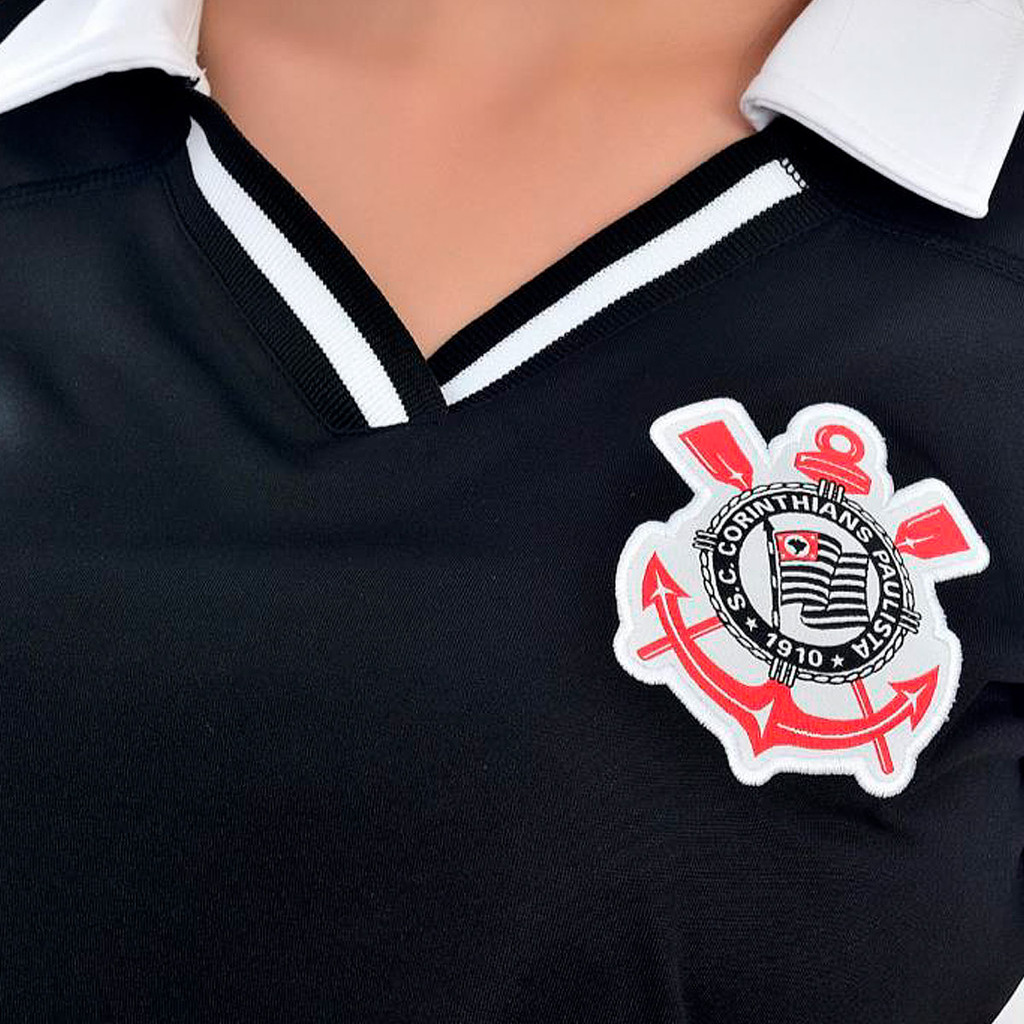 Camisa Cropped Corinthians Dry Preta Feminina Oficial