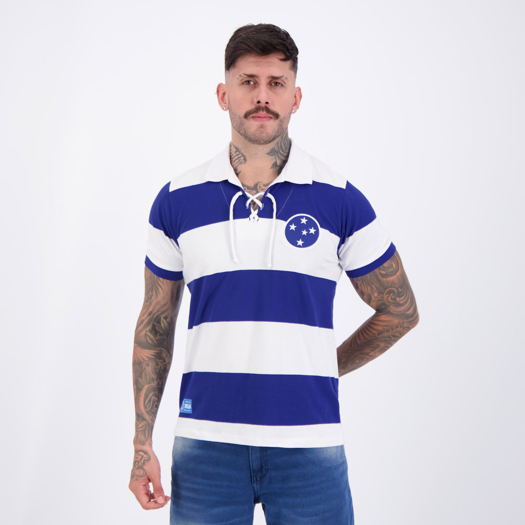 Composição: 96% Algodão e 04% ElastanoGola: Polo, com cordãoCores Predominantes: Branca e azulGênero: MasculinoOrigem: NacionalEscudo: BordadoClube: CruzeiroManga: CurtaDimensões aproximadas (A x L):P: 68 x 50 cmM: 70 x 52 cmG: 72 x 54 cmGG: 74 x 56 cmEG: 76 x 58 cm