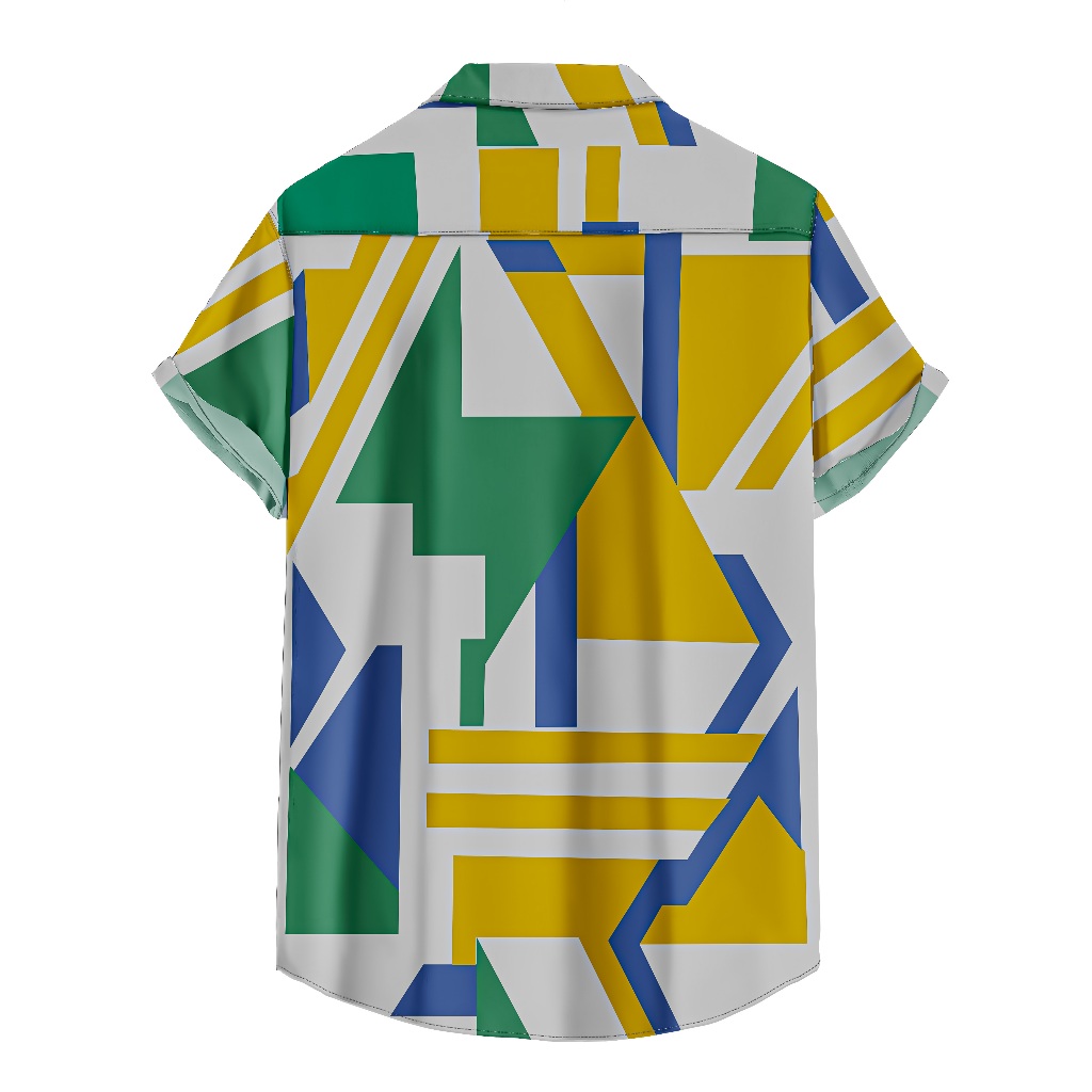 Camisa De Botão Masculina Estampa Geométrica Verão Férias E Viagens Tropicais Festivais [Ref-105]