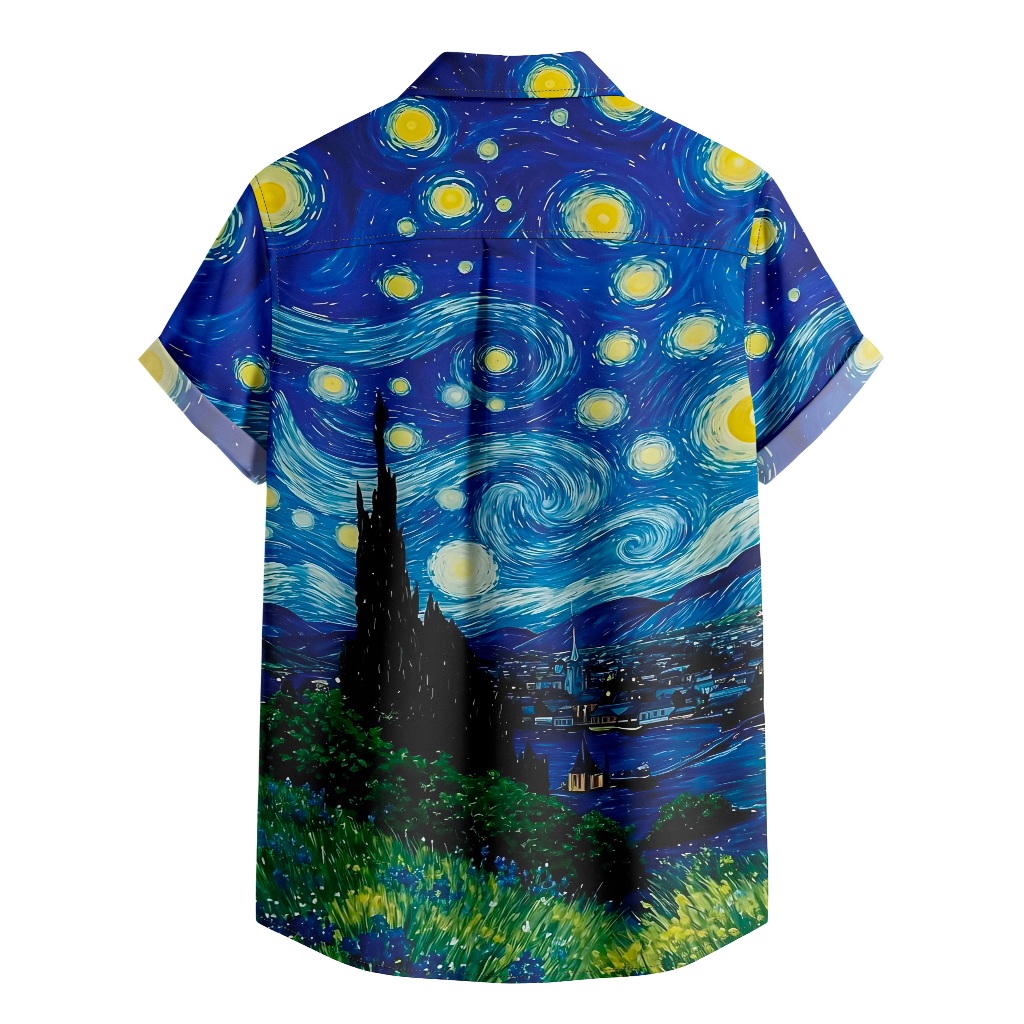 Camisa De Botão Noite Estrelada Arte De Van Gogh Arte Impressionista [Ref-006]