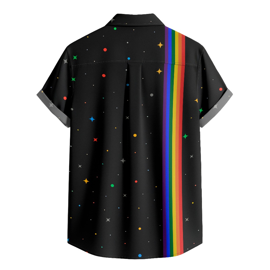 Camisa De Botão Preta Lgbt Arco Iris [Ref-212]