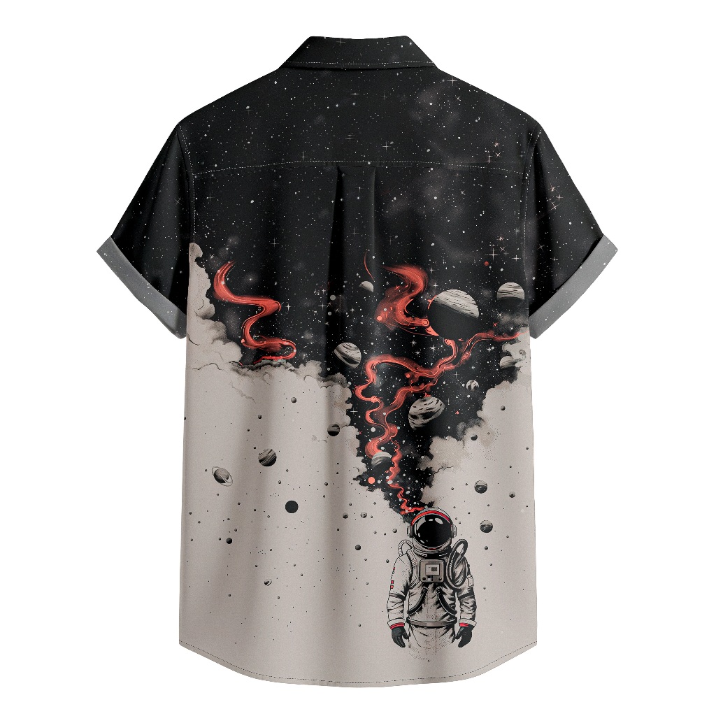 Camisa De Botão Preto E Branca Astronauta Planetas Universo [Ref-171]