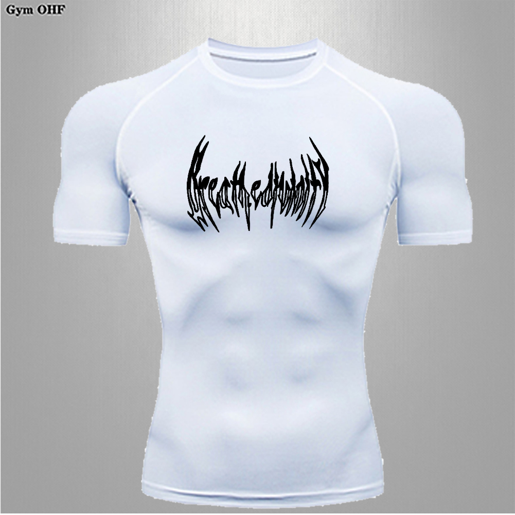 Camisa De Compressão Masculina Tecido De Malha Em Torno Do Pescoço Manga Curta Respirável Umidade Wicking Magro Ajuste T