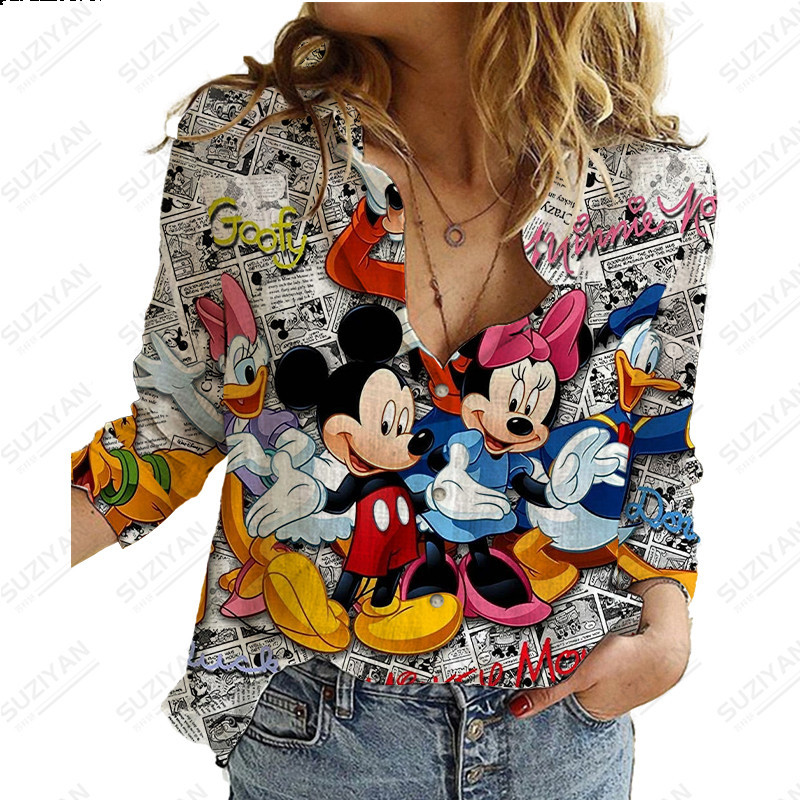 Camisa de lapela de manga comprida solta feminina, camisa Casual impressa em 3D, estilo Harajuku,