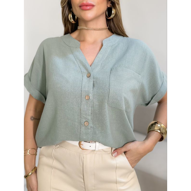 camisa de linho com algodão com detalhe de um bolso G3239