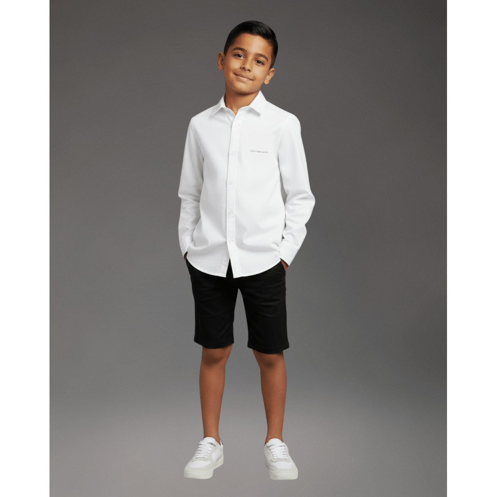 Camisa de Manga Longa Masculina Infantil Básica Estampa Assinatura Ckj Calvin Klein Jeans - Branco