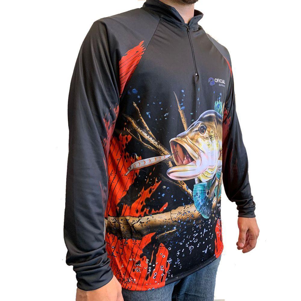Camisa de Proteção Solar UV Tucunaré Isca Branca + Bandana - Oficial da Pesca
