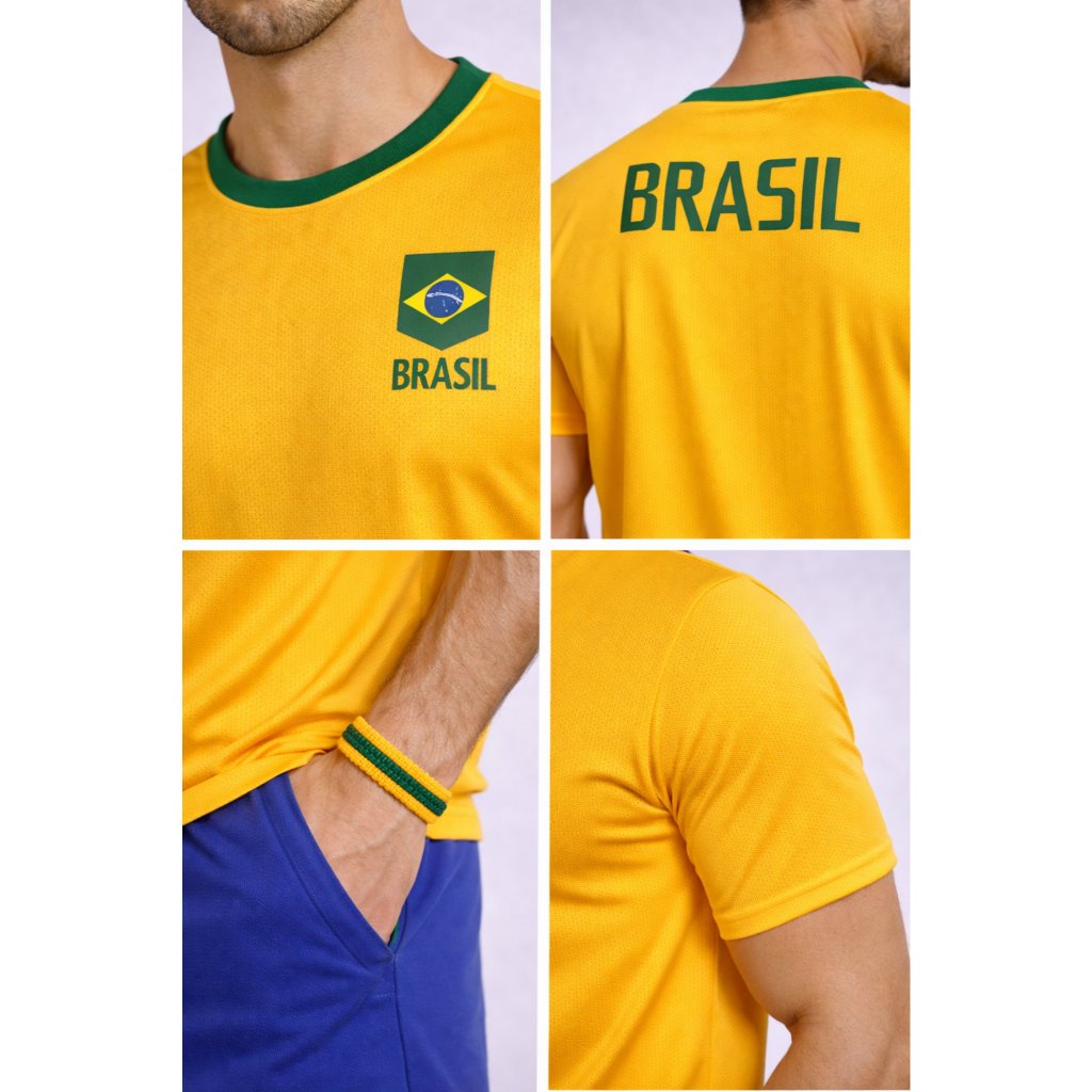 Camisa do Brasil Masculina Seleção Amarela Copa do Mundo A Camisa do Brasil Masculina é a escolha perfeita para quem busca conforto, estilo e versatilidade. Produzida em tecido Elanca 100% Poliéster, ela oferece excelente caimento no corpo, leveza e respirabilidade, ideal tanto para o dia a dia quanto para atividades esportivas. Com visual clássico da Seleção Brasileira, é uma peça indispensável para torcedores e amantes do esporte, perfeita para usar em jogos, treinos, eventos esportivos ou momentos de lazer. Características do Produto Tecido: Elanca Composição: 100% Poliéster Modelagem masculina Leve, confortável e resistente Excelente ventilação e secagem rápida Não amassa com facilidade Ótimo caimento no corpo Ideal para uso esportivo e casual Onde Usar Jogos da Seleção Brasileira Copa do Mundo Futebol society e campo Academia Corrida e caminhada Beach tennis Tênis Uso casual no dia a dia Eventos esportivos e confraternizações Benefícios Conforto térmico mesmo em dias quentes Tecido leve que não limita os movimentos Ideal para quem pratica esportes Visual esportivo e moderno Fácil de lavar e de rápida secagem Alta durabilidade do tecido e da estampa Tamanhos Disponíveis P veste 36 M veste 38 ao 40 G veste 42 GG veste 44 ao 46 Tabela de Medidas (em cm) Comprimento P: 68 M: 73 G: 76 GG: 80 Busto / Tórax P: 96 - 102 M: 102 a 108 G: 108 a 112 GG: 112 a 120 Ombro P: 41 M: 42 G: 44 GG: 45 Manga P: 22 M: 23 G: 24 GG: 25 Observação: As medidas são tiradas com a peça aberta sobre a superfície plana, podendo haver pequena variação. Modo de Lavagem Lavar à mão ou na máquina no modo delicado Usar sabão neutro Não usar alvejante Não lavar com peças de cores contrastantes Secar à sombra Não passar ferro diretamente sobre a estampa