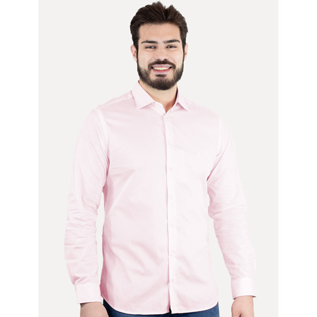 Camisa Dudalina Masculina Milano Tricoline Lisa Stretch Rosa Claro