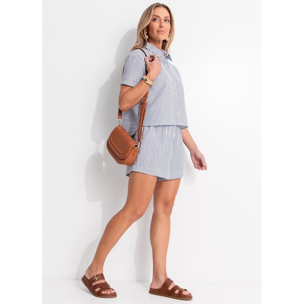 Camisa em tecido anarruga fio tinto, com listras finas azul e brancas, modelagem ampla e mangas curtas. Possui botões frontais e bolso aplicado, sendo ideal para sobreposição com regatas ou uso em conjunto. Leve e fresca, perfeita para dias quentes. Tabela de Medidas: P (36 até 38): Busto: 80 até 88 cm | Cintura: 64 até 72 cm | Quadril: 88 até 96 cm M (40 até 42): Busto: 88 até 96 cm | Cintura: 72 até 80 cm | Quadril: 96 até 104 cm G (44 até 46): Busto: 96 até 100 cm | Cintura: 80 até 88 cm | Quadril: 104 até 112 cm GG (48 até 50): Busto: 104 até 116 cm | Cintura: 88 até 100 cm | Quadril: 112 até 124 cm XXG (52 até 54): Busto: 116 até 128 cm | Cintura: 100 até 112 cm | Quadril: 124 até 136 cm XLG (56 até 58): Busto: 128 até 140 cm | Cintura: 112 até 124 cm | Quadril: 136 até 148 cm. Este produto é destinado apenas para consumidores finais (CPF). Não realizamos a venda para CNPJ.