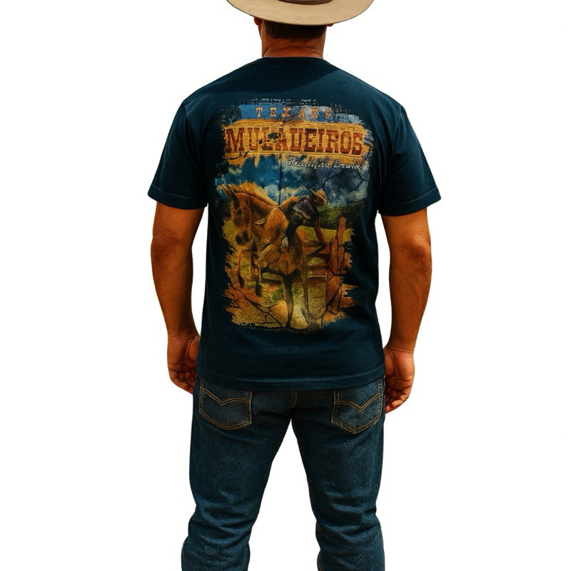 Camisa Estampada "Muladeiro" Moda Country Muladeiros 100% Algodão Country