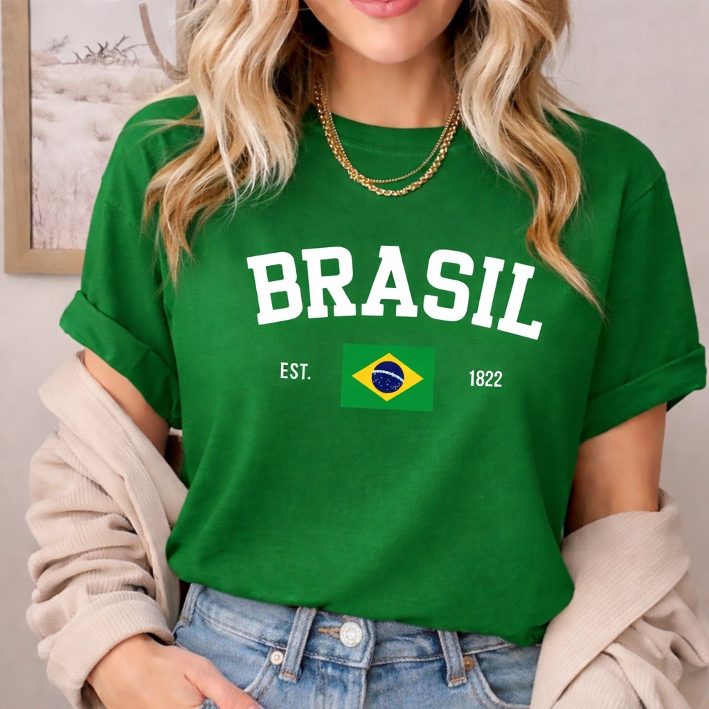 Camisa Feminina Brasil T-shirt Estampada Camiseta Gola Redonda 100% Algodão Macio
