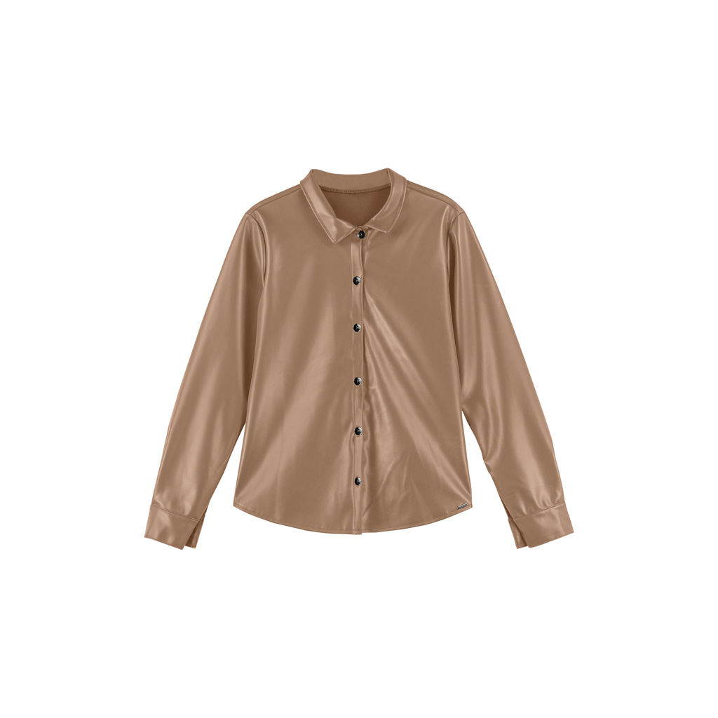Camisa Feminina em Courino Marialícia Marrom Claro