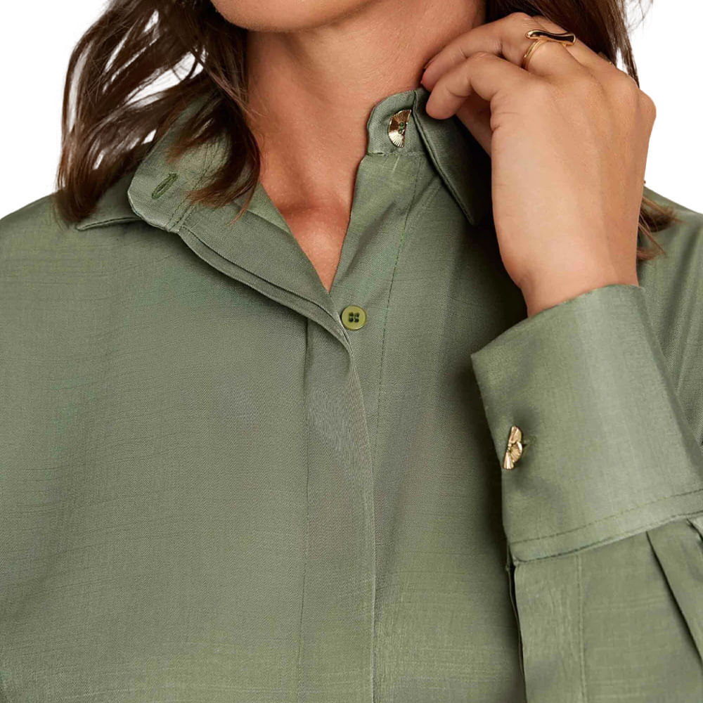 Camisa Feminina Milani Clara Manga Longa Acetinada Verde