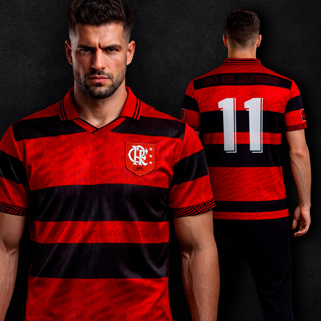 Respeita a história. Veste grandeza. A Camisa Flamengo 1996 é mais que um manto. É um marco. Uma releitura de uma das camisas mais pesadas da história do clube — carregando a essência rubro-negra em cada detalhe, em um ano simbólico que antecede o centenário do Flamengo. Produzida em tecido jacquard premium, com textura rica e construção de alto nível, essa peça entrega presença, identidade e respeito à tradição. O escudo em patch bordado e costurado reforça o padrão elevado de acabamento — aqui não tem atalho, é alto nível. O número 11 nas costas vem com aplicação moderna, mantendo a estética clássica com leitura contemporânea. Essa camisa não é básica. É peça de coleção. É Flamengo em estado bruto. Benefícios do Produto: Tecido jacquard premium com textura retrô Escudo em patch bordado e costurado (alto padrão) Caimento moderno com visual clássico Material leve, confortável e respirável Peça com presença forte — nível europeu Características: Composição: 100% Poliéster Gola: Polo retrô com acabamento premium Escudo: Patch bordado e costurado Numeração: Aplicação moderna nas costas Estilo: Retrô lifestyle / bloco core Referência: Flamengo 1996 (era pré-centenário) Com que roupa usar: Calça preta ou jeans escuro (torcedor raiz) Shorts neutro + tênis retrô (street) Jaqueta por cima (look pesado de jogo) Modo de lavagem e conservação: Lavar à mão ou ciclo leve Não usar alvejante Secar à sombra Medidas Aproximadas: Largura x Altura - P (BR): 51 x 66 - M (BR): 54 x 69 - G (BR): 57 x 73 - GG (BR): 60 x 76
