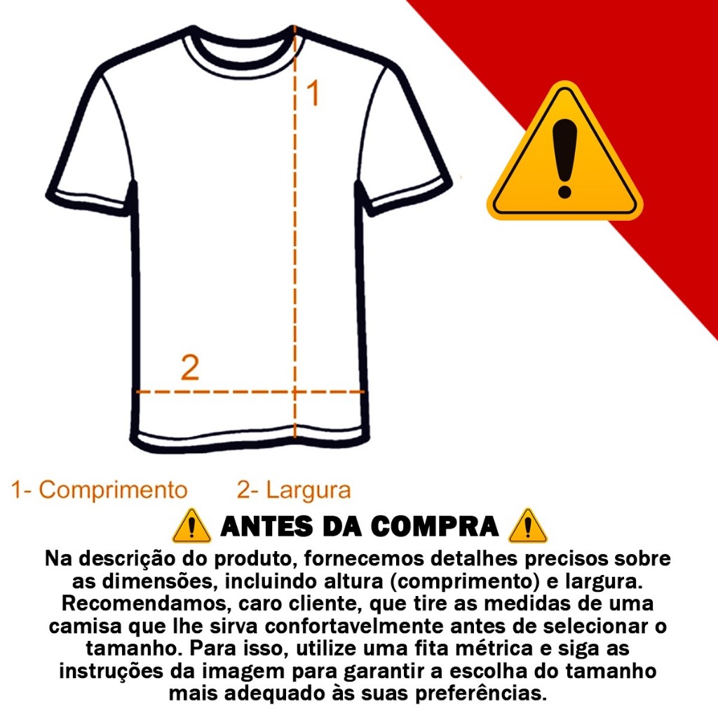 CARACTERÍSTICAS: Poliéster Premium 4k ; com Sublimação Total Imagem: Foto Real do Produto ; Tamanhos (Medidas Aproximadas): CAMISAS ; UNISSEX: 8: Comprimento(Altura) 50cm | Torax (Largura) 37cm 12: Comprimento(Altura) 55cm | Torax (Largura) 41cm 14: Comprimento(Altura) 60cm | Torax (Largura) 45cm P: Comprimento(Altura) 68cm | Torax (Largura) 48cm M: Comprimento(Altura) 72cm | Torax (Largura) 52cm G: Comprimento(Altura) 76cm | Torax (Largura) 54cm GG: Comprimento(Altura) 78cm | Torax (Largura) 57cm XG: Comprimento(Altura) 82cm | Torax (Largura) 63cm CAMISAS FEMININAS: BabyLook P: Comprimento(Altura) 52cm | Torax (Largura) 43cm BabyLook ;M: Comprimento(Altura) 57cm | Torax (Largura) 45cm BabyLook ;G: Comprimento(Altura) 59cm | Torax (Largura) 49cm BabyLook ;GG: Comprimento(Altura) 62cm | Torax (Largura) 52cm